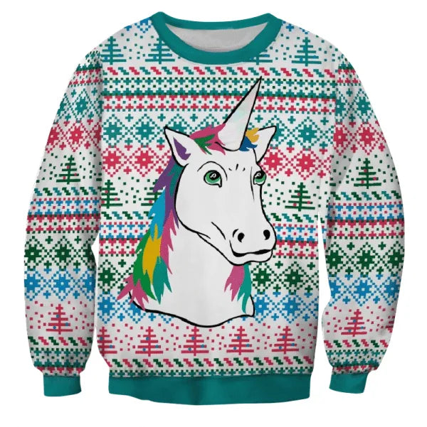 Op zoek naar een uniek, vrolijk cadeau? De Unicorn with Happy Colors Christmas Sweater is een gouden keuze voor iedereen die van gekke fashion houdt of gewoon een beetje magie wil toevoegen aan de feestdagen. Niet zomaar een trui, maar een echte conversation starter vol glimlachen.