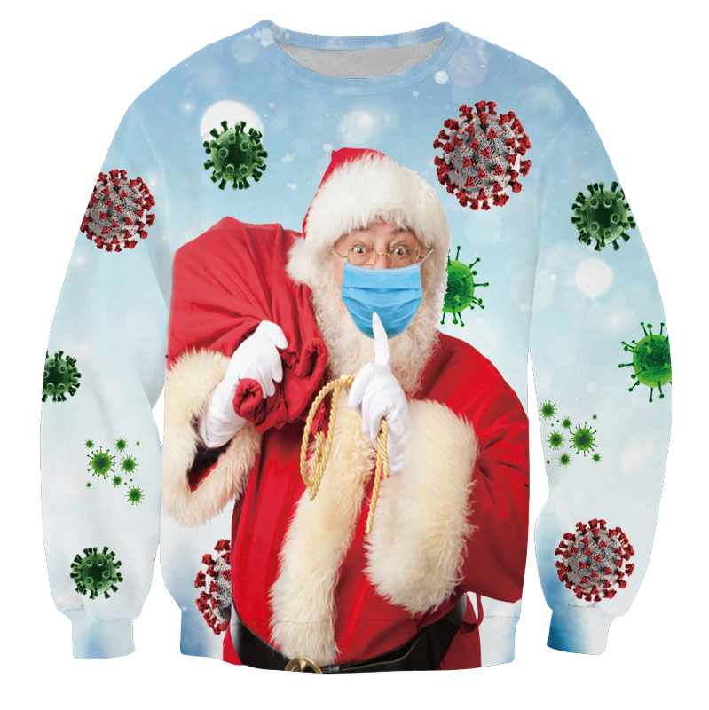Of je nu lekker thuis op de bank ligt met kerstkransjes óf op veilige afstand meedoet aan een foute kersttrui-contest: deze trui laat zien dat jij humor hebt, zelfs in tijden van handgel en lockdowns.